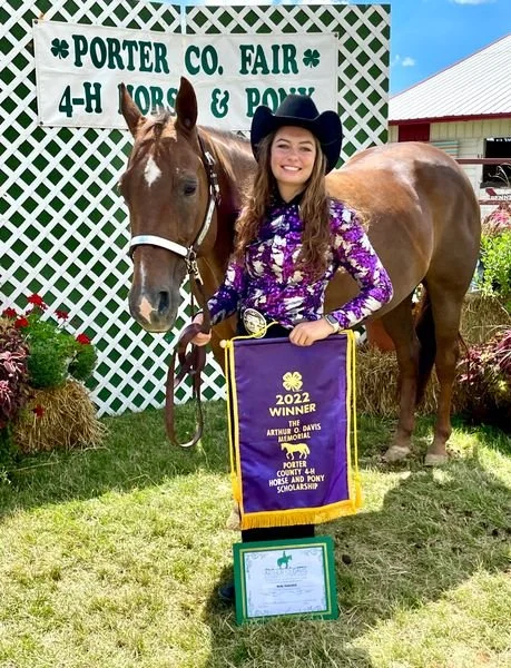 “Receiving this scholarship as a 10 year 4-H Horse and Pony member was a culmination of the hard work I had put towards this project. The scholarship helped me be financially able to achieve my future goals at Purdue. With their support, I’ve been able to be accepted into the Purdue Doctor of Pharmacy program and complete a minor in Animal Science. The generosity of donors and people in the community truly make this scholarship meaningful and it leaves a lasting impact on the kids.”
